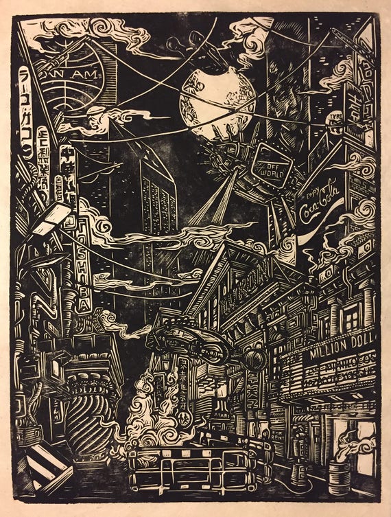 18”x24″ 2-color linocut on 20″x26″ Lokta paper