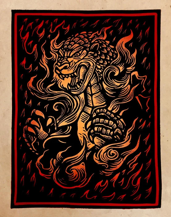 18”x24″ 2-color linocut on 20″x26″ Lokta paper