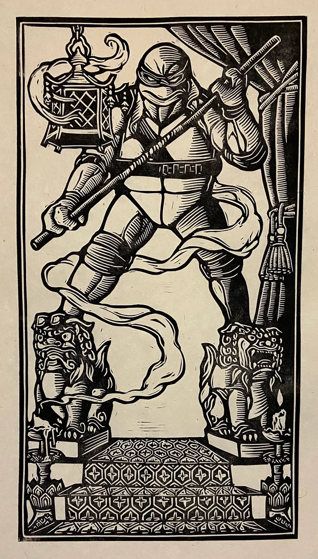 18”x24″ 2-color linocut on 20″x26″ Lokta paper