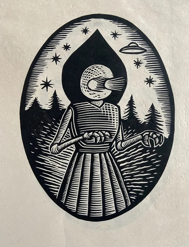 18”x24″ 2-color linocut on 20″x26″ Lokta paper