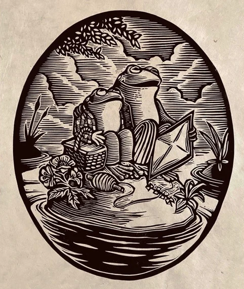 Frog And Toad Block Print