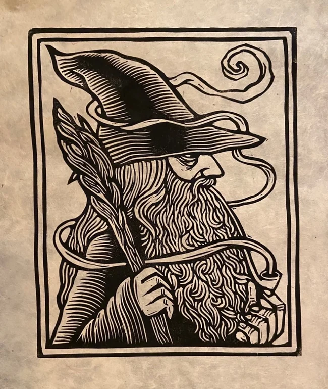 18”x24″ 2-color linocut on 20″x26″ Lokta paper