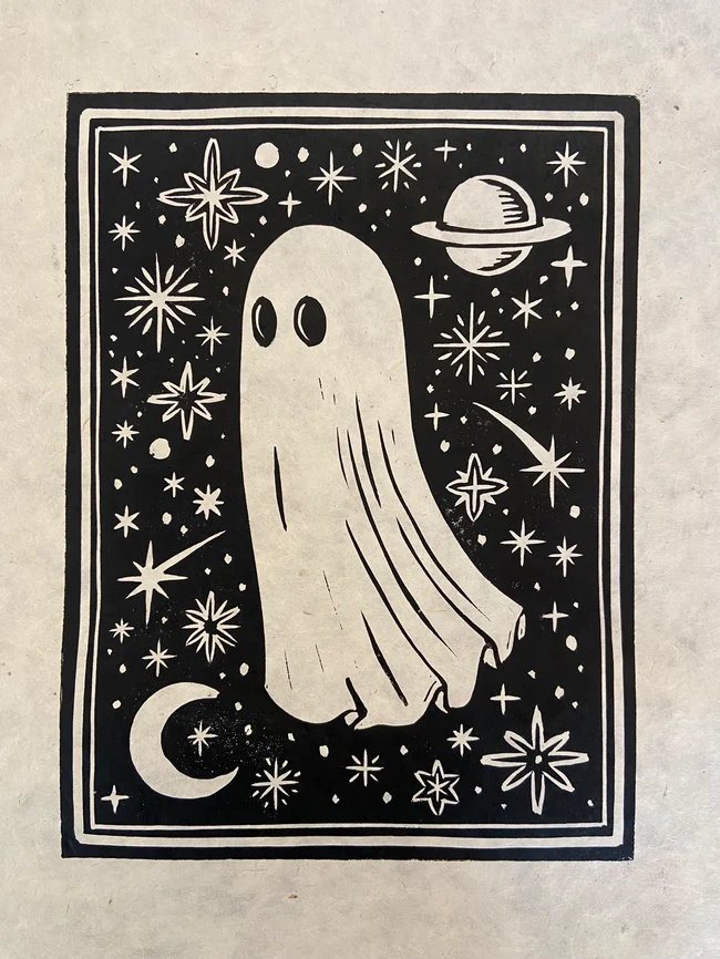 18”x24″ 2-color linocut on 20″x26″ Lokta paper