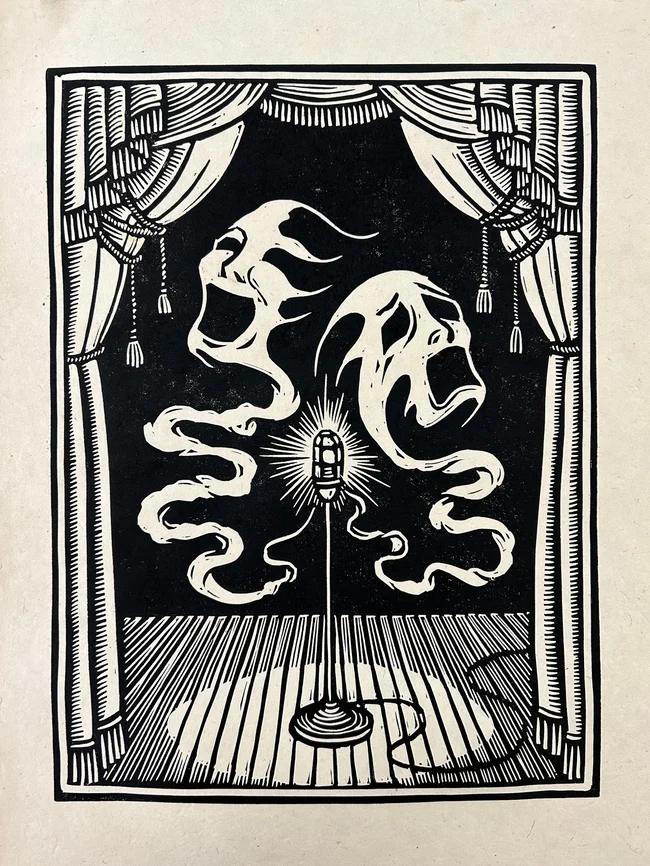 18”x24″ 2-color linocut on 20″x26″ Lokta paper