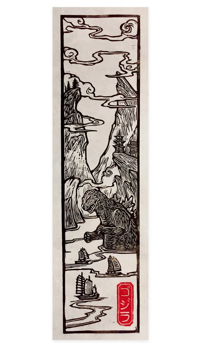 6”x24″ linocut on 10″x30″ Lokta paper
