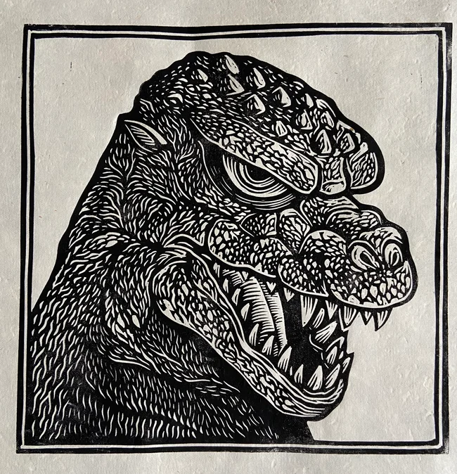 18”x24″ 2-color linocut on 20″x26″ Lokta paper