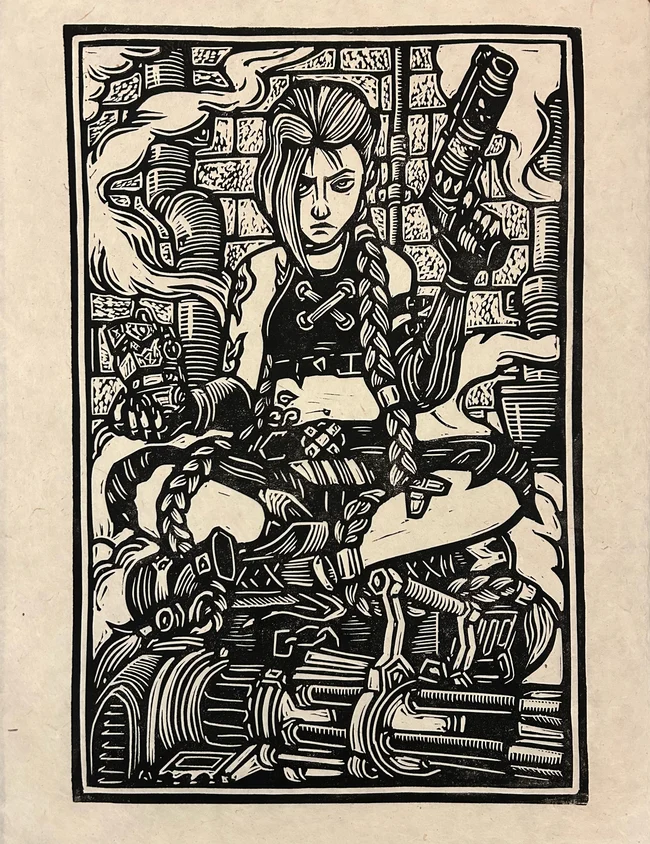 18”x24″ 2-color linocut on 20″x26″ Lokta paper