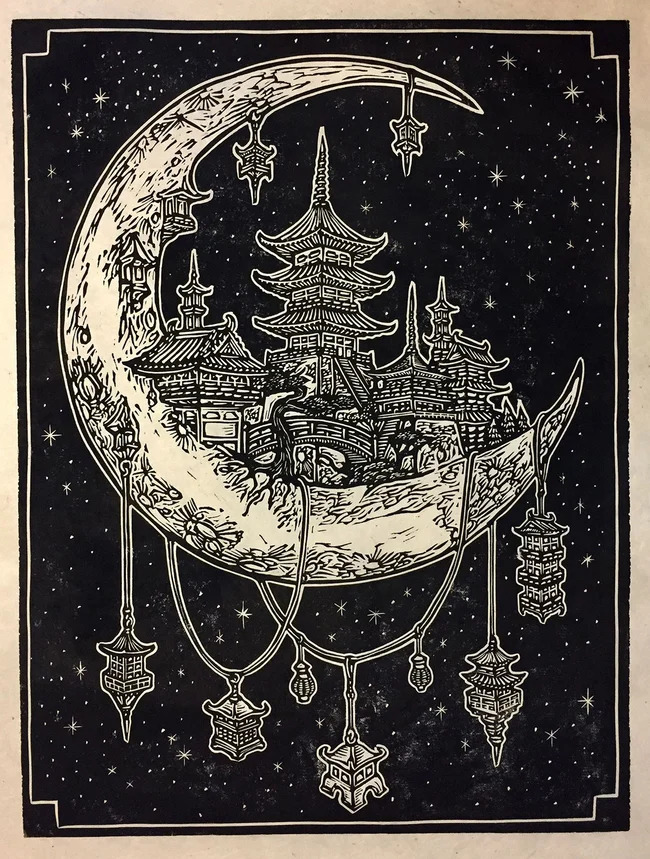 18”x24″ 2-color linocut on 20″x26″ Lokta paper