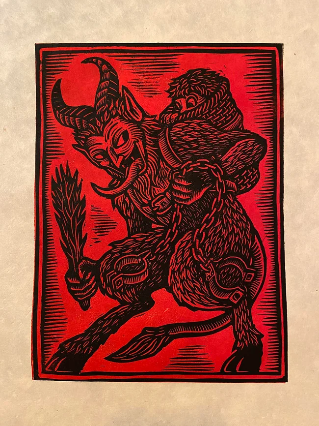 18”x24″ 2-color linocut on 20″x26″ Lokta paper