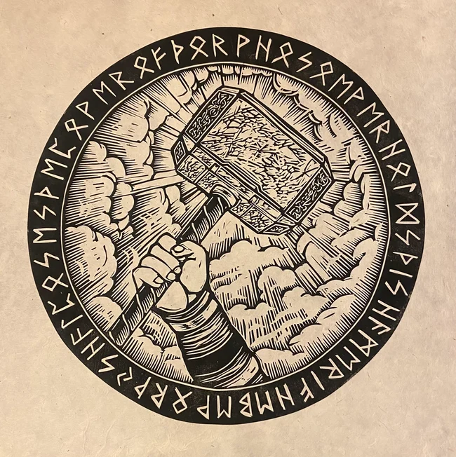 18”x24″ 2-color linocut on 20″x26″ Lokta paper