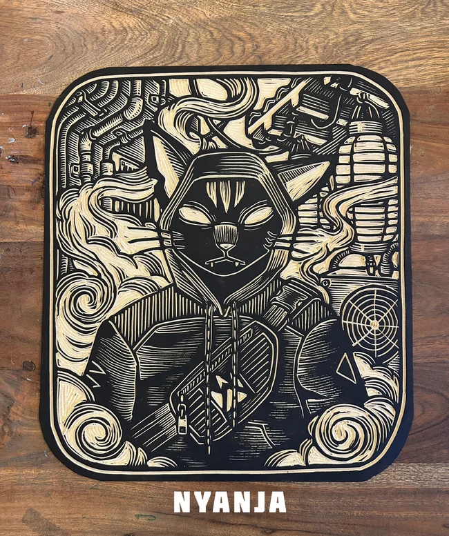18”x24″ 2-color linocut on 20″x26″ Lokta paper