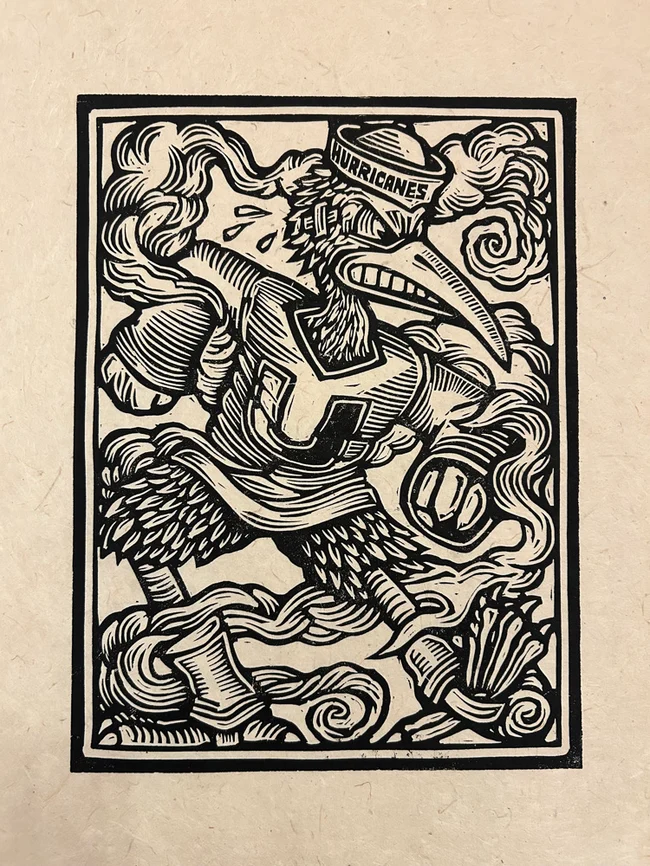 18”x24″ 2-color linocut on 20″x26″ Lokta paper