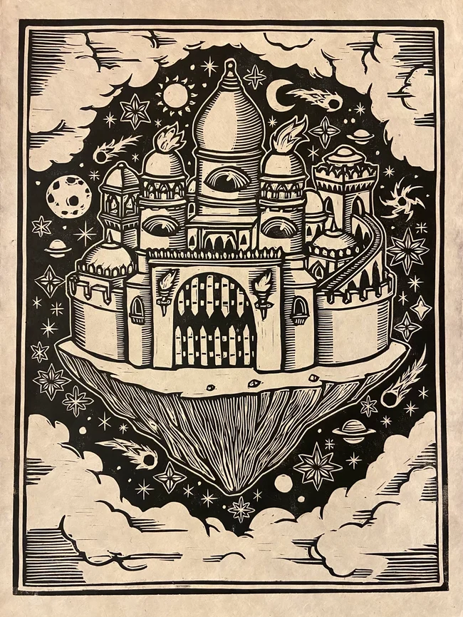 Space Fortress Block Print