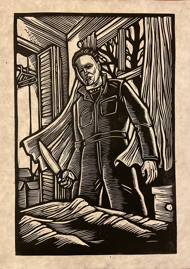 18”x24″ 2-color linocut on 20″x26″ Lokta paper