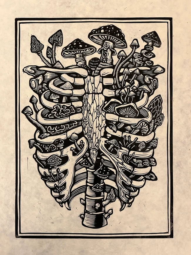 18”x24″ 2-color linocut on 20″x26″ Lokta paper