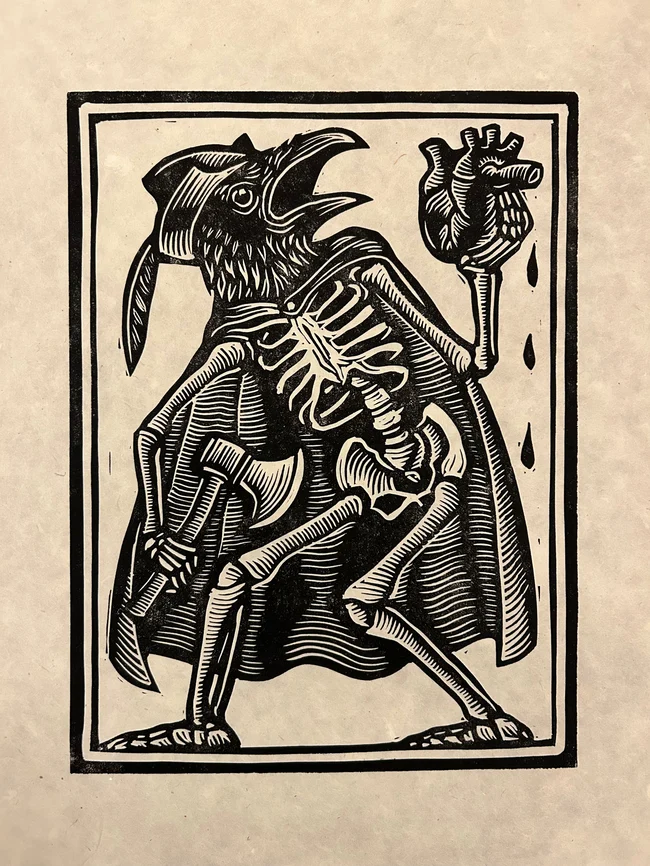 18”x24″ 2-color linocut on 20″x26″ Lokta paper